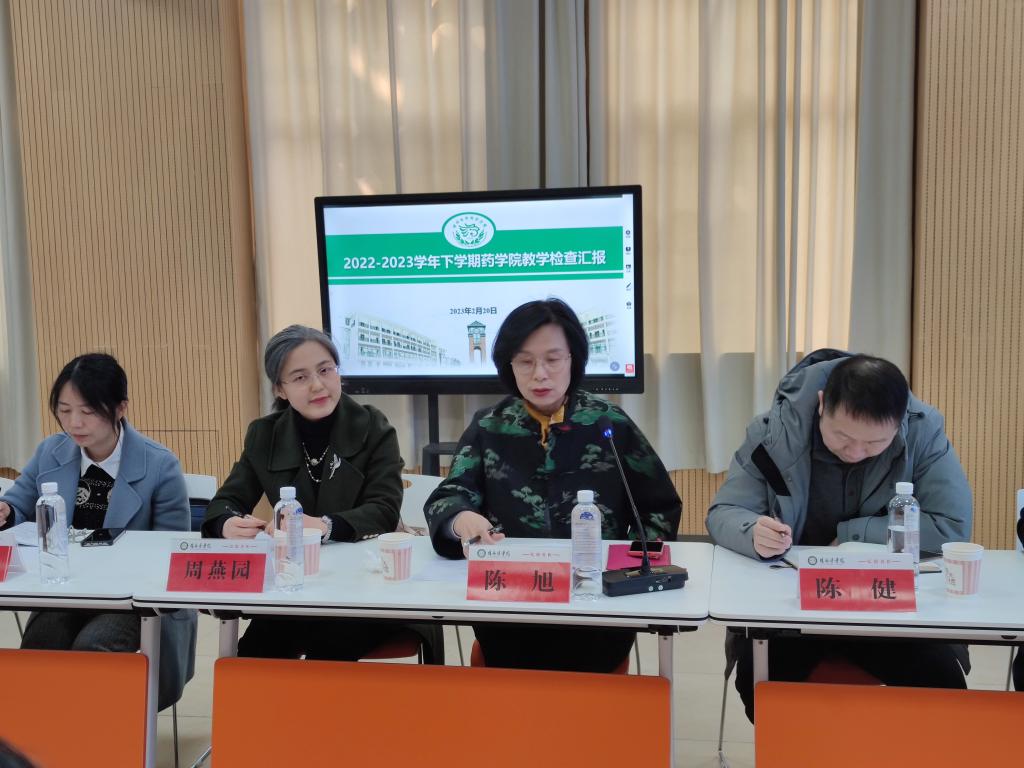 首先药学院从上学期重点工作回顾、本学期教学工作准备及重点工作计划等方面进行汇报。随后,检查组成员针对相关工作作出了具体反馈和指导。