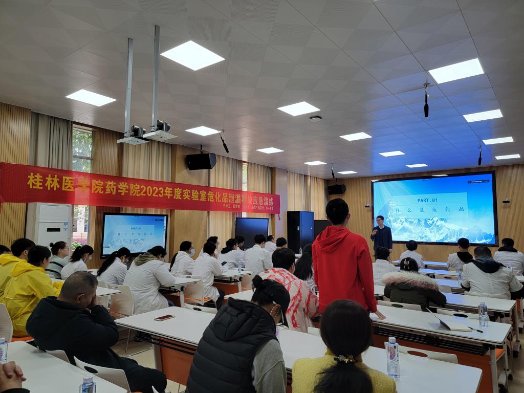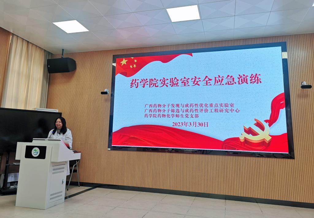 为提高实验室安全突发事件应急处置能力、强化师生实验室安全意识,切实保障学院教学、科研高质量发展,3月30日上午,由药学院主办,海尔生物医疗、卓一生物协办的“两江论坛”活动之——实验室安全应急演练在药学楼2108举行。本次演练邀请了校国资处实验室及危化品管理科马海林副科长到场指导,药学院党委书记肖湘君、院长杨扬、副院长张业、副院长李芳耀出席演练活动,实验教学中心人员、师生代表到场观摩学习,数十名师生参与演练。