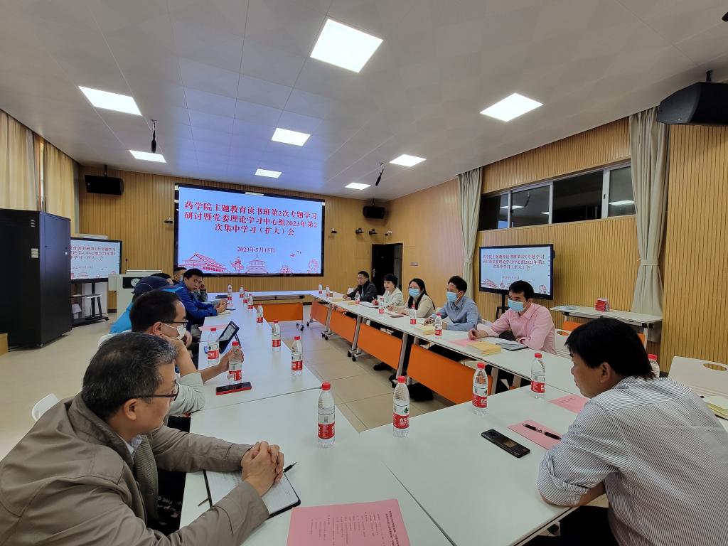 5月15日上午,药学院在药学楼2108教室举行主题教育读书班第2次专题学习研讨暨党委理论学习中心组2023年第2次集中学习(扩大)会,药学院党政领导、组织员、教研室(科室)代表参加会议,会议由党委书记肖湘君主持。