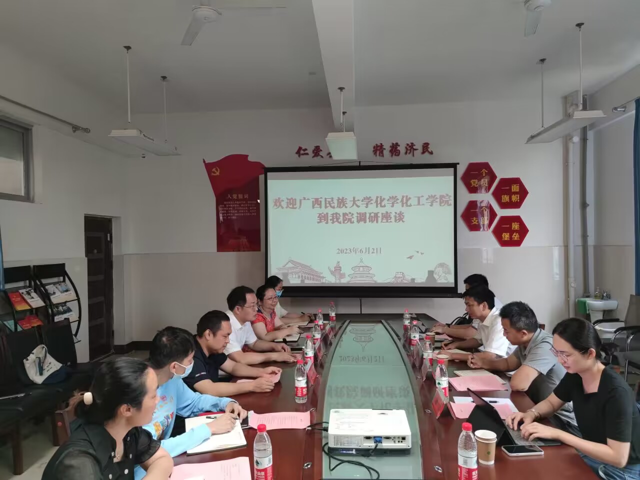 6月2日上午,广西民族大学化学化工学院党委书记黄钦一行到我院就基层党建、人才培养、产学研合作等方面工作开展调研座谈活动。校党委常委、副院长马献力、药学院领导班子、院办、教研科、学工办等相关人员参加座谈。