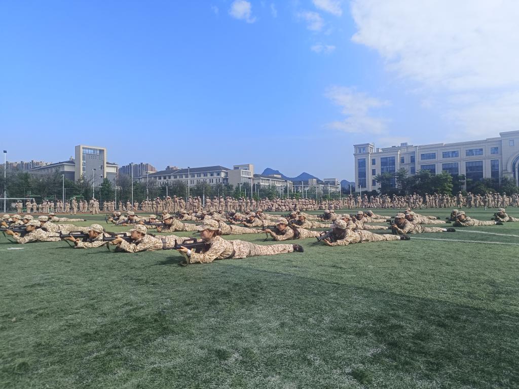为全面贯彻党的教育方针和新时代军事战略方针,深入落实立德树人根本任务和强军目标根本要求,2023年8月28日,我校在临桂校区足球场开始了为期14天的军训,药学院2023级新生全员参训。
