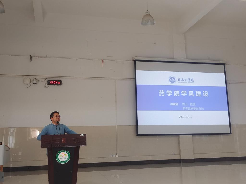 为帮助新生更好的适应大学生活,进一步落实立德树人根本任务,实现高质量人才培养目标,10月31日下午,药学院在教学南楼多功能报告厅举行了2023级新生入学教育活动第二讲,对大学生学风建设和集体生活适应性教育等内容做了报告。药学院党委副书记谭钦刚、本专科生辅导员老师、学院全体2023级本专科生参加本次活动。