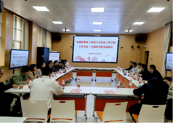 药学院领导对桂林电子科技大学光电工程学院王祥书记一行的到来表示欢迎,并介绍了学院近年来党建方面取得的成绩及学院相关基本情况。光电工程学院领导介绍来访人员及交流目的。