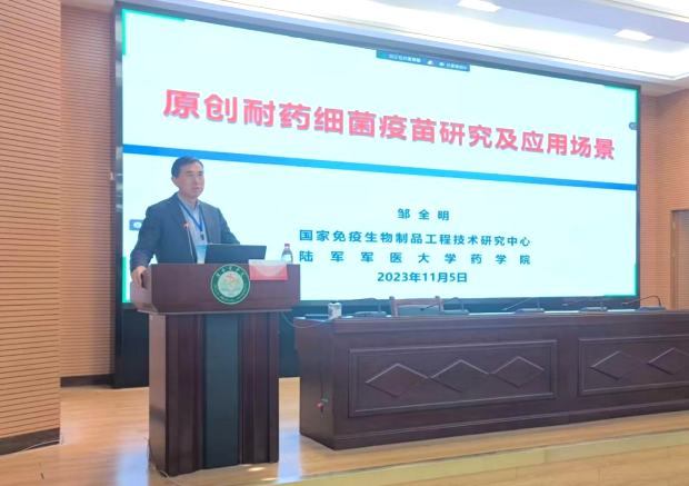 讲座以”超级耐药菌的临床危害及由此引起的抗生素滥用危机“为切入点,展示了研发安全有效的超级耐药细菌疫苗的紧迫性和面临的挑战。邹全明教授结合其30年从事原创生物制药与疫苗研发、超级耐药细菌感染与免疫机制研究的经验,以金黄色葡萄球菌的疫苗研发为案例,围绕该疫苗的药学研究、药效学研究、安全性研究展开精彩讲演。他向现场师生展示了科学求实、严肃认真的工作作风,以及矢志报国的科学家精神。他鼓励大学生门面向国家重大需求和人民生命健康开展课题研究,夯实专业基础,拓宽专业的眼界,培养交叉学科学习的能力。