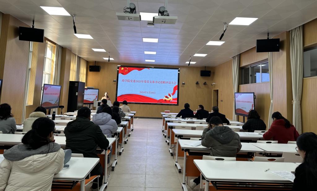 为进一步夯实基层党建工作,强化党支部书记职责,根据校党委组织部“关于开展2023年度党支部书记评议考核工作的通知”要求,2024年1月10日上午,药学院党委在药学楼2108会议室召开2023年度党支部书记述职评议大会。学院党委委员、组织员出席大会,各党支部书记及党员代表参加本次大会,会议由药学院党委书记肖湘君主持。
