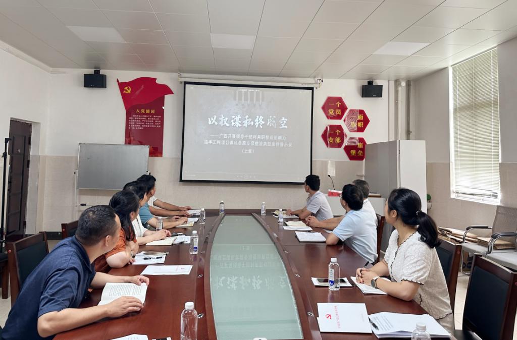 在研讨交流环节,药学院药物研究所师生党支部和红色阵营党支部书记分享了学习心得体会,并围绕导学关系、党建与业务双融双促、教学相长等方面进行了深入交流。随后,与会人员还集体观看了警示教育专题片《以权谋私终成空—广西开展领导干部利用职权或影响力插手工程项目谋私贪腐专项整治典型案件警示录》。