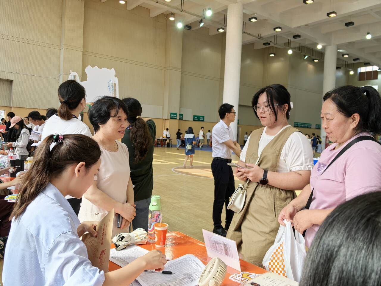 迎新现场横幅高挂,彩旗飘扬,热闹非凡,校园里到处都是忙碌的身影和欢声笑语。从火车站到学校,从校道到宿舍都设立了专门的接待点,每一趟车到站,迎新志愿者便热情地上前迎接,向新生和家长致以最诚挚的问候,并“夺走”新生和家长手中沉甸甸的行李,让初来乍到的他们体验到了家一般的温暖。