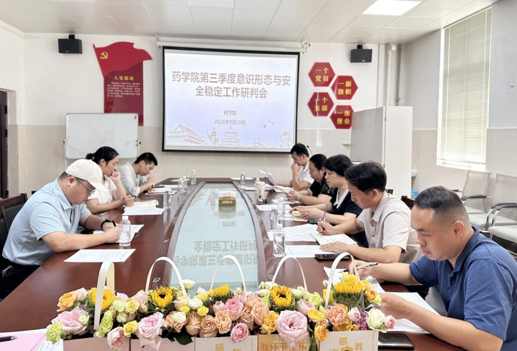 9月10日上午,药学院在药学楼1301会议室召开2024年第三季度意识形态与安全稳定工作研判会。学院党政领导班子、辅导员代表参加会议,会议由药学院党委书记肖湘君主持。