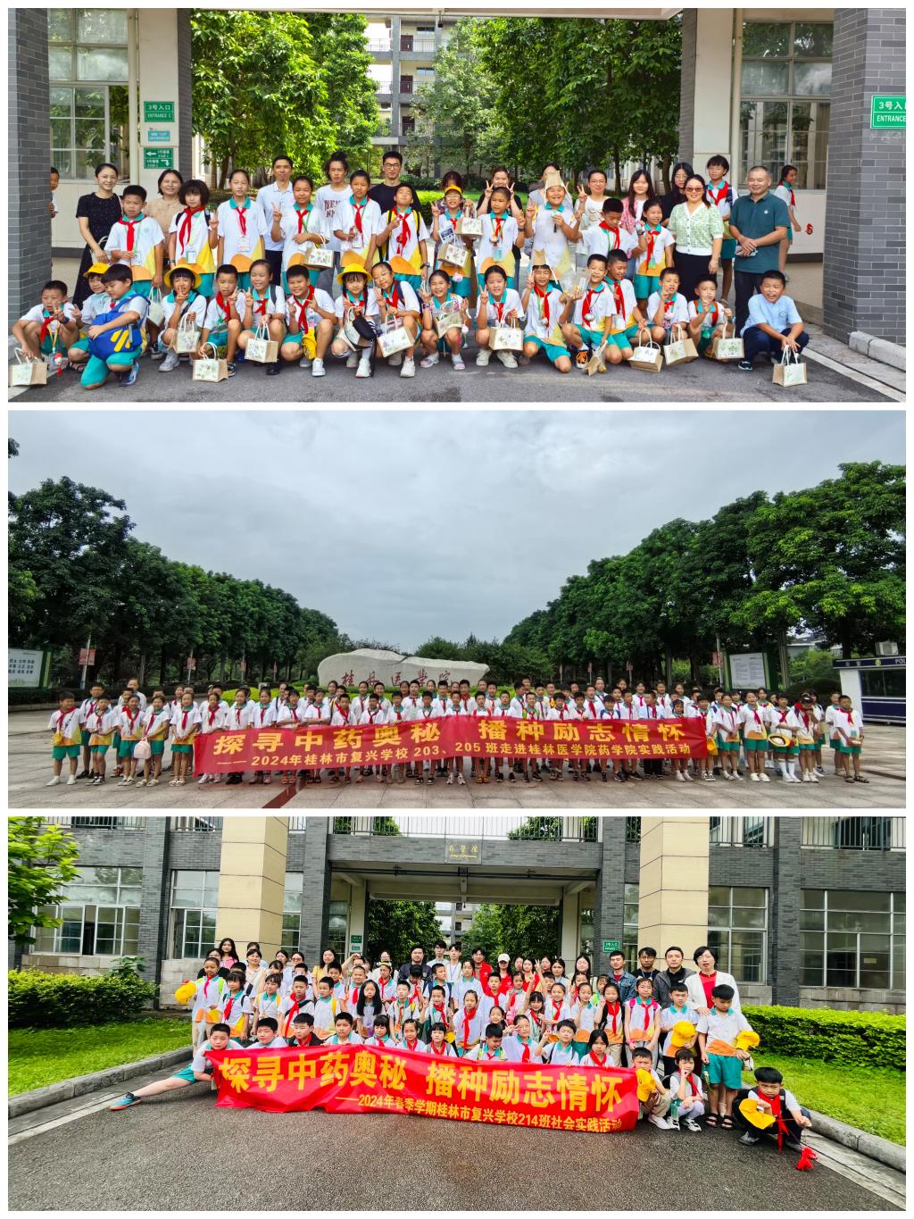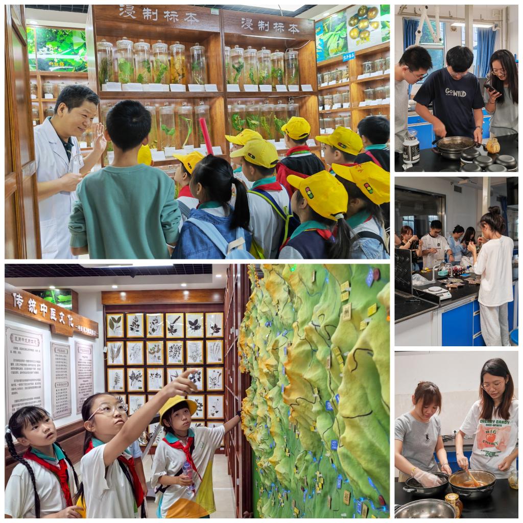 为了弘扬中医药优秀传统文化,提升青少年健康素养和科学认知,今年4月和9月,桂林医学院药学院举行了两场主题为“探寻中药奥秘,播种励志情怀”的科普实践活动。来自桂林市复兴学校203班、205班、214班的140名小学生和部分学生家长代表参加本次活动。活动主要包括采集药用植物、辨识中药材标本,及制作有趣的植物敲拓染、驱蚊香囊与芝麻丸等中草药手工。通过“现场科普+动手实践”活动,小学生不仅可以学习到中医药相关知识,树立药食同源的健康饮食理念,加深了对中医药文化的理解和认同。