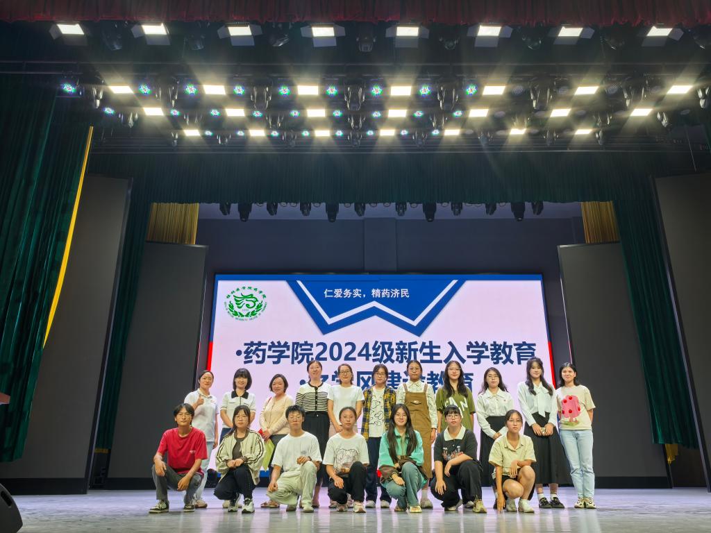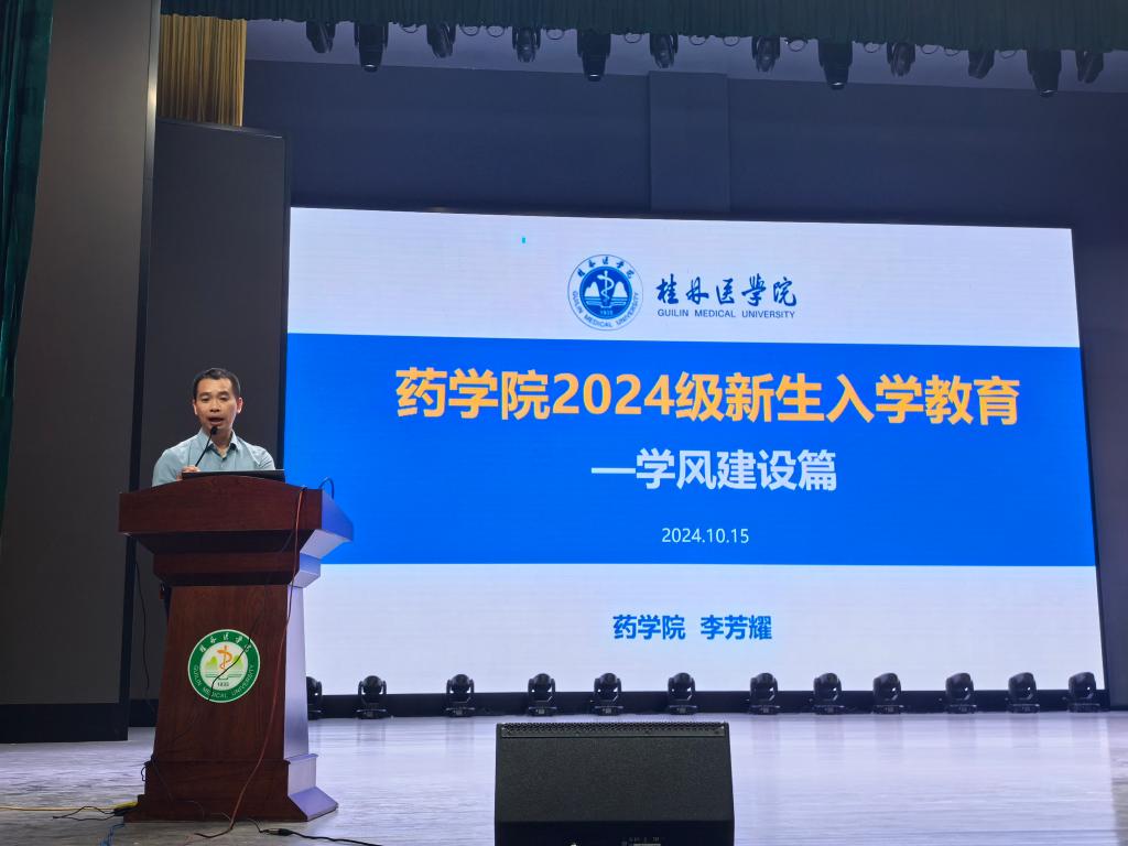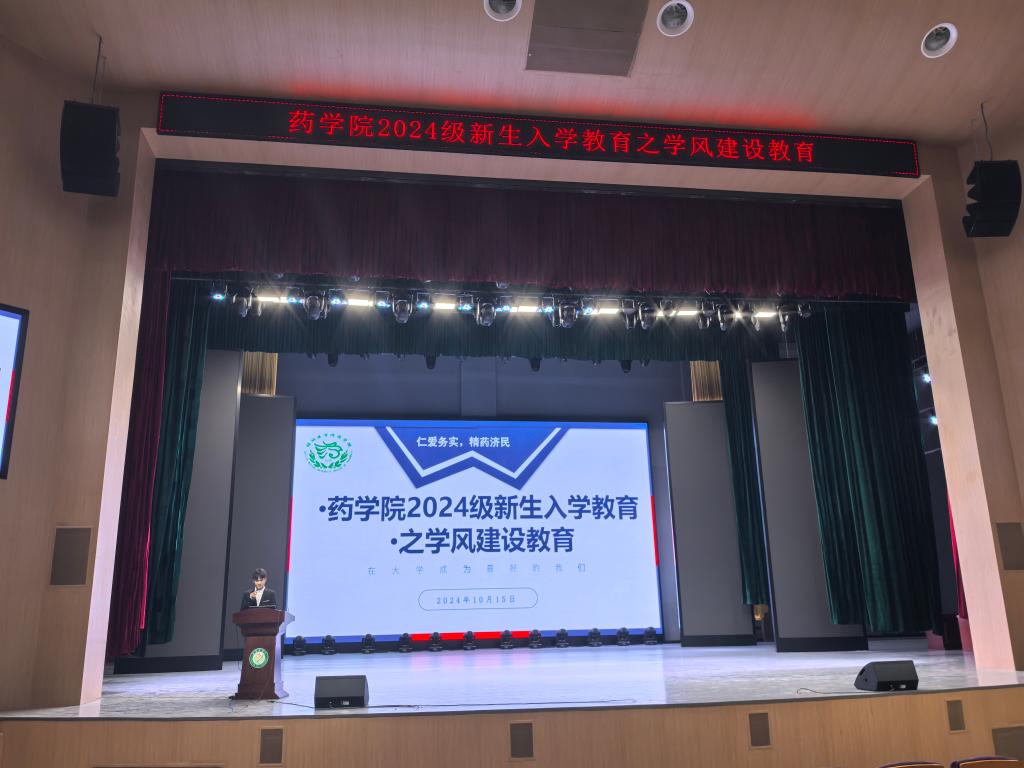 进一步落实立德树人根本任务,凝聚共识,同心协力,进一步推进学风建设,营造良好的育人氛围,10月15日下午,药学院在大学生艺术中心举行2024级新生入学教育之学风建设教育活动。药学院党委副书记李芳耀、教务处老师、学工办老师、新生班级导师班主任、2024级全体本专科新生参加了本次活动。