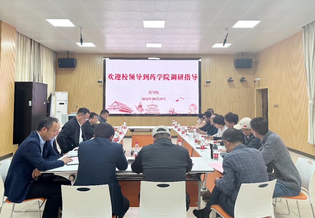 10月29日上午,校党委书记马献力带队到药学院开展调研指导工作,学校党办院办、组织部、研究生院、教务处相关负责人陪同调研,药学院党政领导班子成员和部分教研室主任、党支部书记代表参加调研座谈,会议由药学院副院长张业主持。