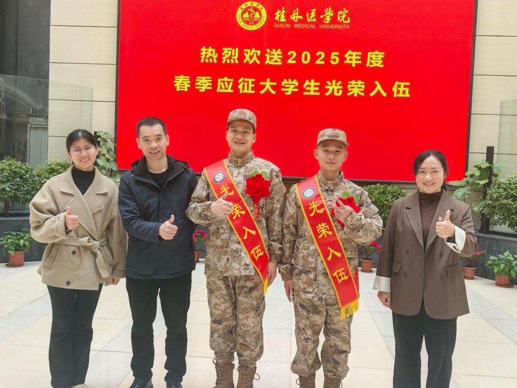 2025年3月中旬,药学院喜讯频传,经过严格的体格检查、政治考核、役前教育等层层选拔,药学院2021级中药学本科班熊春健、2022级药学高职班覃耿辉、唐心民三名同学顺利入伍,即将开启军旅生涯。他们积极响应国家号召,将专业知识与报国理想相结合,展现了新时代药学青年的责任与担当。