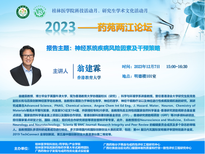 【来源:“药苑两江论坛”系列讲座活动通知—香港教育大学翁建霖教授 | 发布日期:2023-12-05 】