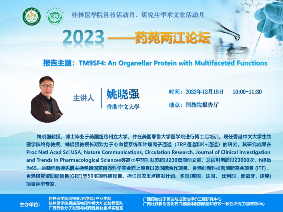 【来源:“药苑两江论坛”系列讲座活动通知—香港中文大学姚晓强教授 | 发布日期:2023-12-11 】