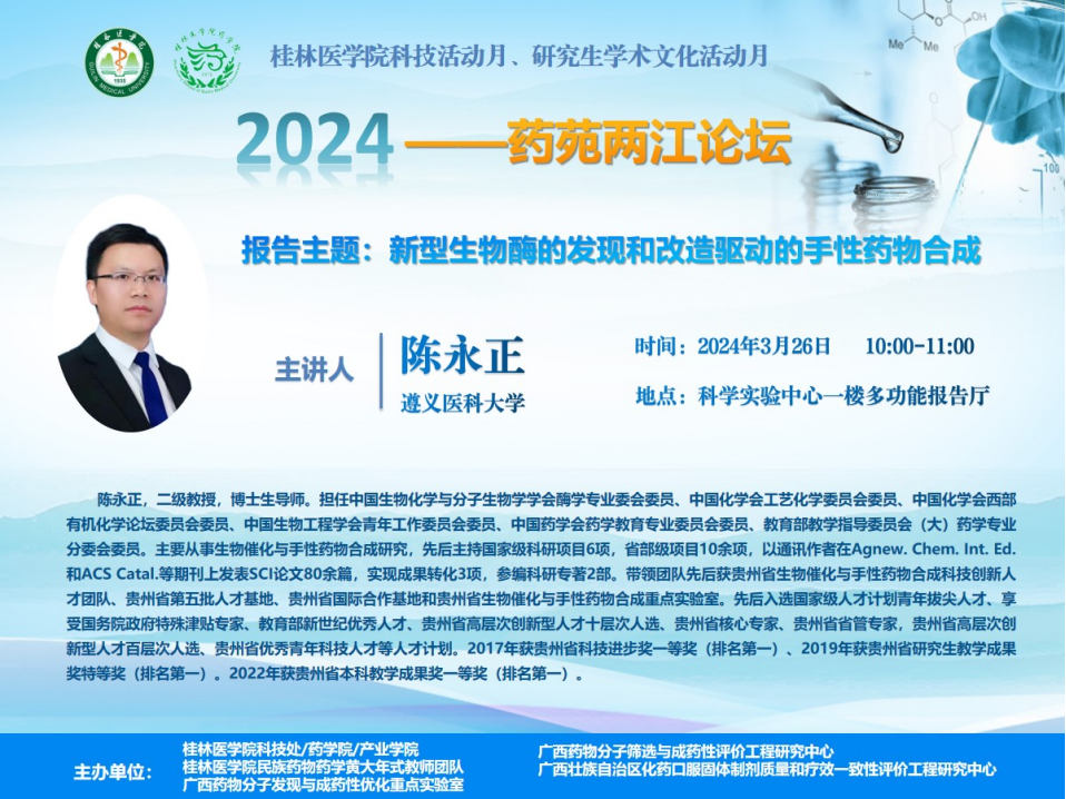 【来源:“药苑两江论坛”系列讲座活动通知—遵义医科大学陈永正教授 | 发布日期:2024-03-25 】