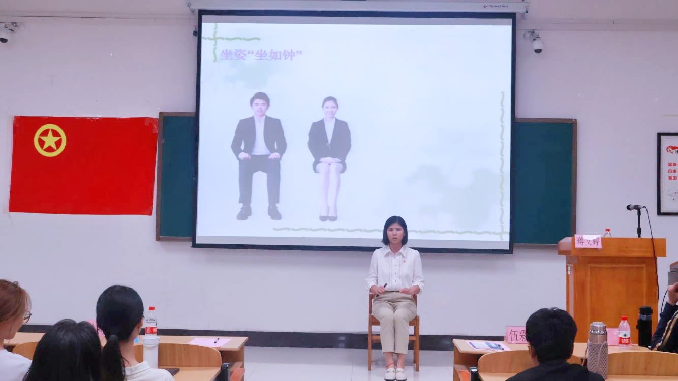 本次讲座在庄严的团歌中拉开帷幕,主持人介绍本次学生干部培训旨在全面提升新一届学生干部的综合能力,蒋文婷老师从仪表礼仪、举止礼仪、交往礼仪三个方面进行讲解,讲述学生干部在日常生活中如何与身边的老师和同学们进行沟通,蒋老师现场展示并讲解举止礼仪,让学生干部们进一步了解文明礼仪的具体规范。随后,伍彩红老师从学生干部该有的意识、如何定位自己、学生干部应该怎样工作等几个方面进行了引导,让学生干部明确自己的定位和工作,同时也提高了学生干部适应环境、接受新挑战和自主解决问题的能力。此外伍老师还讲解了如何撰写通知、新闻稿以及新闻稿照片的筛选。学生干部是同学们和老师之间的沟通桥梁,是服务同学们的主力军,学生干部应该在培训中提升自我素质,加强工作能力,担当起学生干部的责任,贡献自己的一份力量。