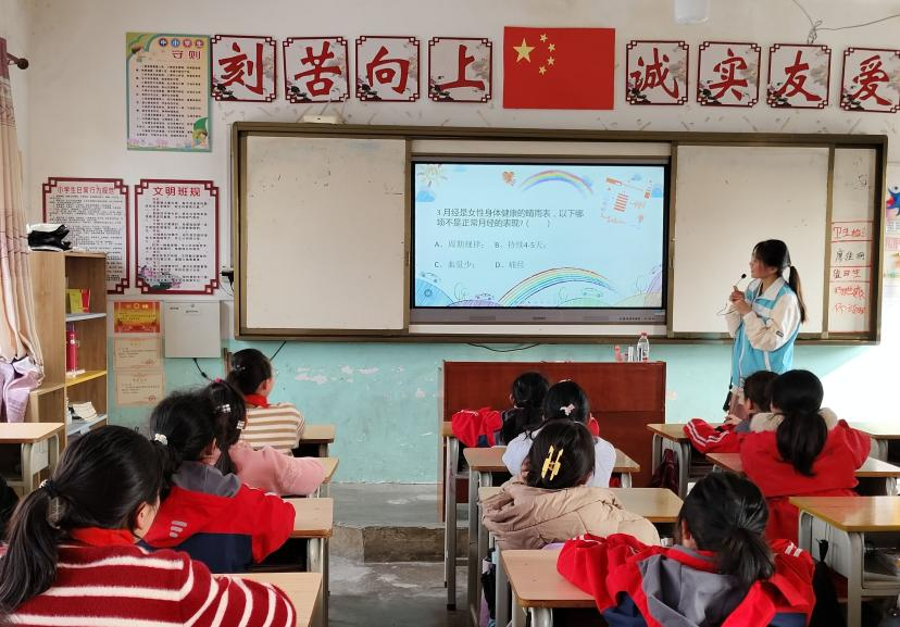 药学院“红色阵营”分小组向小学生开展了不同主题的课程,内容丰富、形式新颖。授课人员在低年级绘声绘色地向小朋友们详细讲述了植树节与爱护环境的相关知识,在中年级组讲解了预防春季常见疾病及安全用药知识,在高年级向男生讲解了心理健康及校园暴力的危害、遇到校园暴力时的正确处理方法;向女生讲解了女性健康小知识。小学生们认真听讲,积极举手回答老师的问题,课堂气氛活跃。