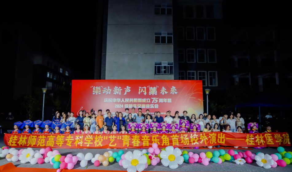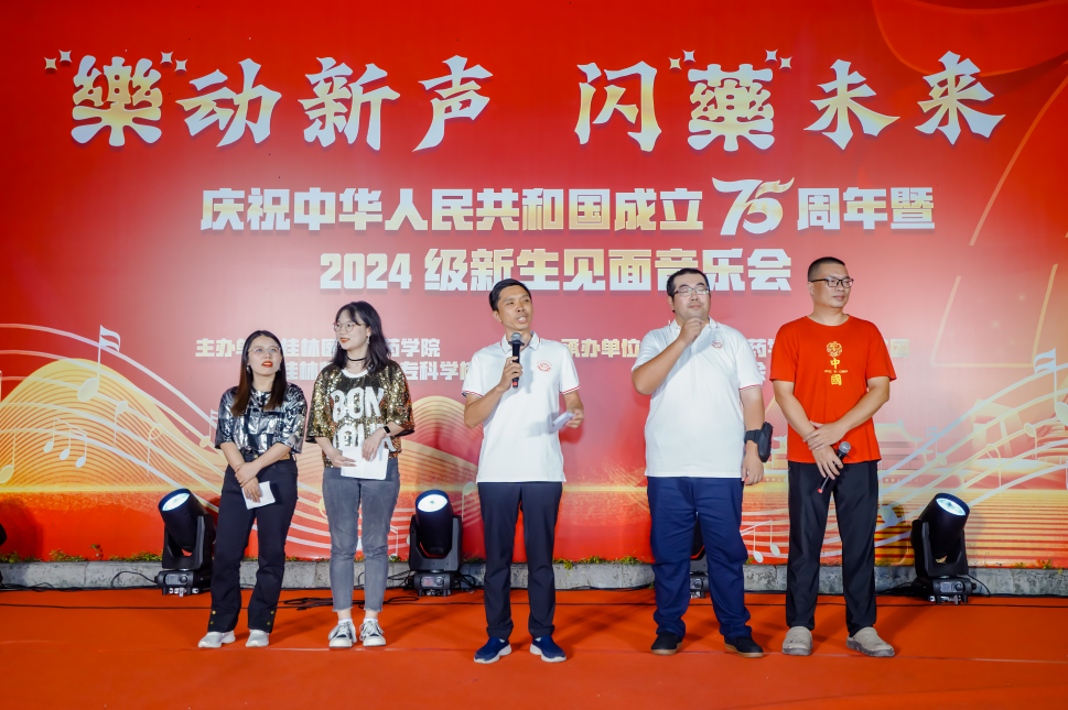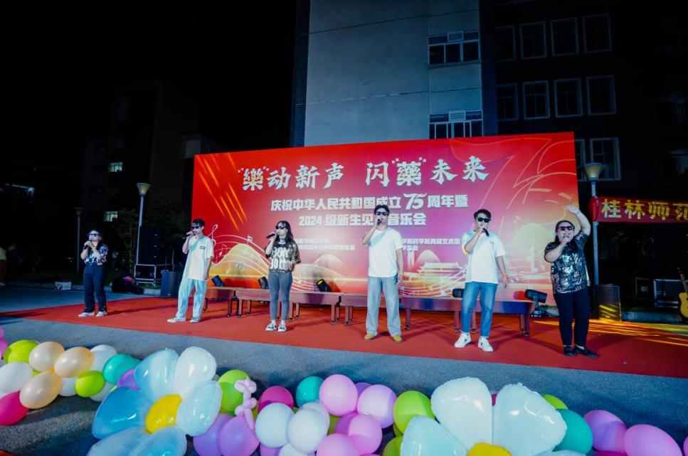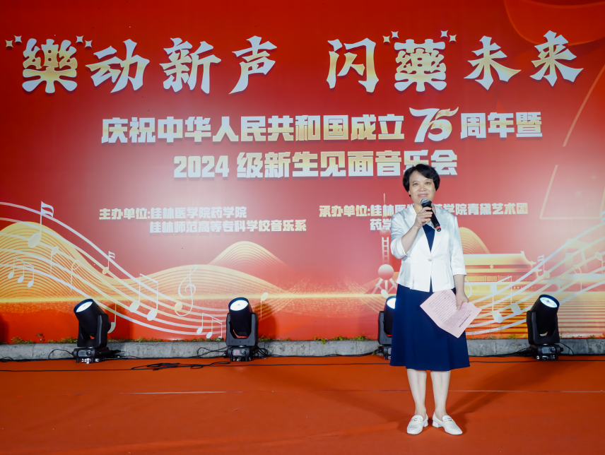 金秋九月,在全校上下学习贯彻落实党的二十届三中全会精神、喜迎中华人民共和国成立75周年之际,为帮助药学院新生适应大学生活,展示新生青春风采,9月27日晚,药学院联合桂林师范高等专科学校音乐系在临桂校区药学楼举办了以“‘樂’动新声 闪‘藥’未来”为主题的庆祝中华人民共和国成立75周年暨2024级新生见面音乐会。药学院及桂林师范高等专科学校音乐系党政领导班子、师生代表、药学院2024级全体新生共500余人参加了本次音乐会。