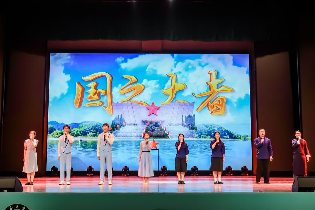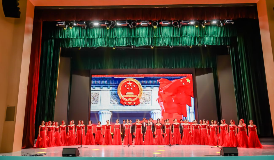 晚会在慷慨激昂的《歌唱祖国》合唱中拉开帷幕,大家用嘹亮且饱含深情的歌声,抒发着对祖国的热爱与敬意,气势磅礴的旋律瞬间点燃了全场气氛。桂林医学院同学们带来的原创朗诵节目《追光》,以真挚的情感、抑扬顿挫的语调,带领观众重温那段艰苦卓绝而又光辉的岁月,一同感受那份深沉的爱与责任;舞蹈《碇步桥》将江南水乡清水悠悠的意境演绎得淋漓尽致,一舞一动尽显舞蹈艺术魅力,带领观众们走入如诗如画的江南风景中。