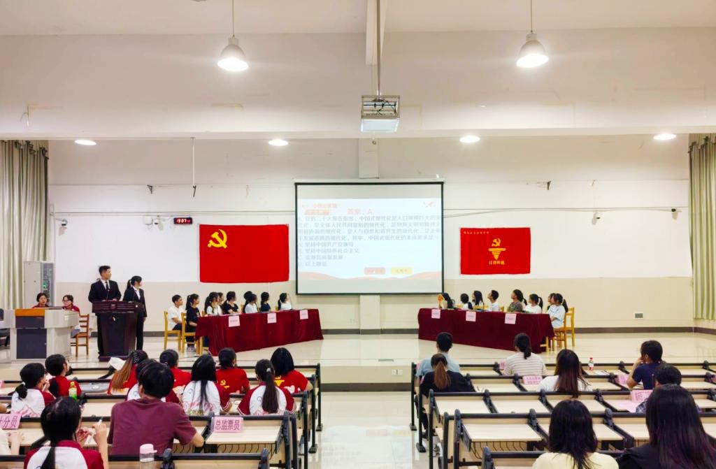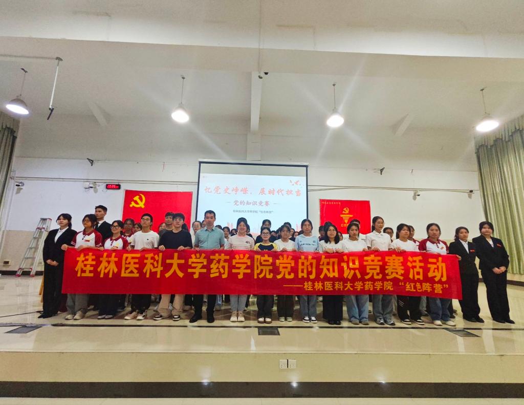 为深入学习贯彻习近平新时代中国特色社会主义思想和党的二十大精神,激发同学们学习党史知识的热情,药学院“红色阵营”于2025年5月13日晚上19:00在临桂校区南教学楼多功能报告厅举办以“忆党史峥嵘,展时代担当”为主题的党的知识竞赛决赛。药学院党委副书记李芳耀、学工办伍彩红老师以及各二级学院学生代表出席了此次活动。