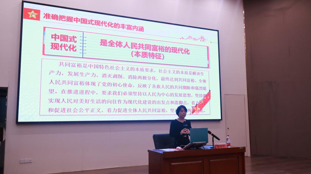 药学院党委书记肖湘君以《踔厉奋发、勇于担当,为推进中国式现代化贡献青春力量》为题,围绕什么是中国式现代化、怎样走稳走好中国式现代化道路、如何为推进中国式现代化贡献青春力量三个方面,与各位团学干部一起就中国式现代化展开了深入浅出的讲授。她授课引用了大量案例,并结合贯彻落实党的二十大精神,对青年干部如何提高活动实效有机融合、提升显示度高的品牌活动、持续深化“党建引领 、五育五化”三全育人等工作展开了探讨,并希望同学们能成为勤于思考、勇于担当、乐于分享、善于汇报的优秀学生干部,书写无悔青春。